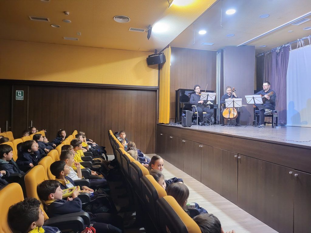 En el día de hoy, lunes 9 de marzo, el alumnado de Educación Primaria ha disfrutado del segundo Concierto Pedagógico del curso: “Tonadillas de locos y cuerdas”, una propuesta musical ambientada en el periodo del Clasicismo.