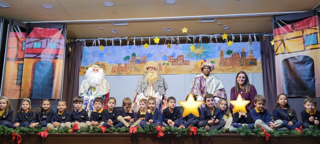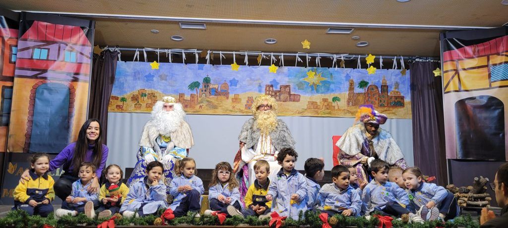 El último día lectivo antes de las vacaciones de Navidad recibimos la ilustre e inolvidable la visita de Sus Majestades los Reyes Magos de Oriente Melchor, Gaspar y Baltasar